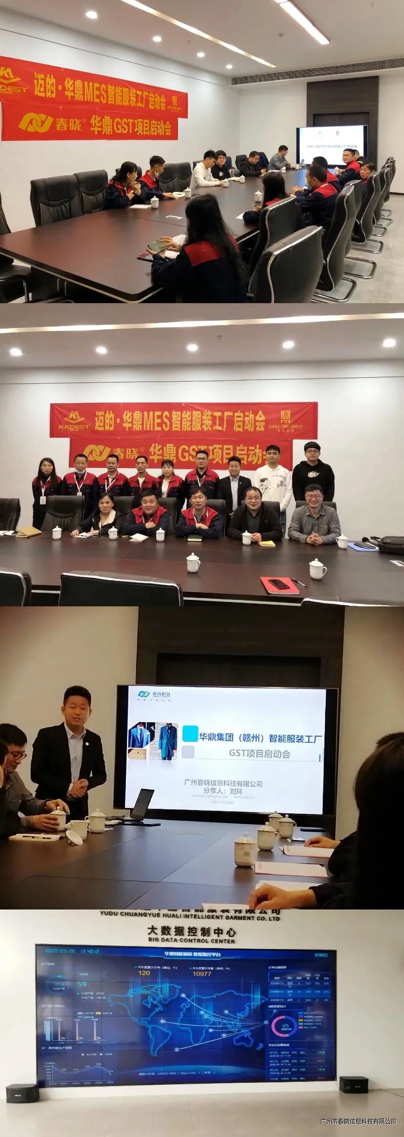 集团旗下子公司华鼎服饰(赣州)有限公司于2019年金秋十月入驻于都,坐落于上欧工业园区,厂房总面积14万平方米。目前一期工程包含9条智能吊挂生产系统,9条智能流水线生产系统,全流程后道生产系统。今年会GST+迈的MES于2020年3月26日正式启动!启动会当天就迎来了江西省副省长的检阅。今年会GST,力求最好的产品赋能客户,打造智慧协同数字化工厂!实现数据从订单接入系统,研发管理系统,裁剪管理系统到车缝管理系统。后道管理系统至物料管理系统,实现全流程数字化、透明化,并结合智能调度,优化排程,实现生产效率显著提升。